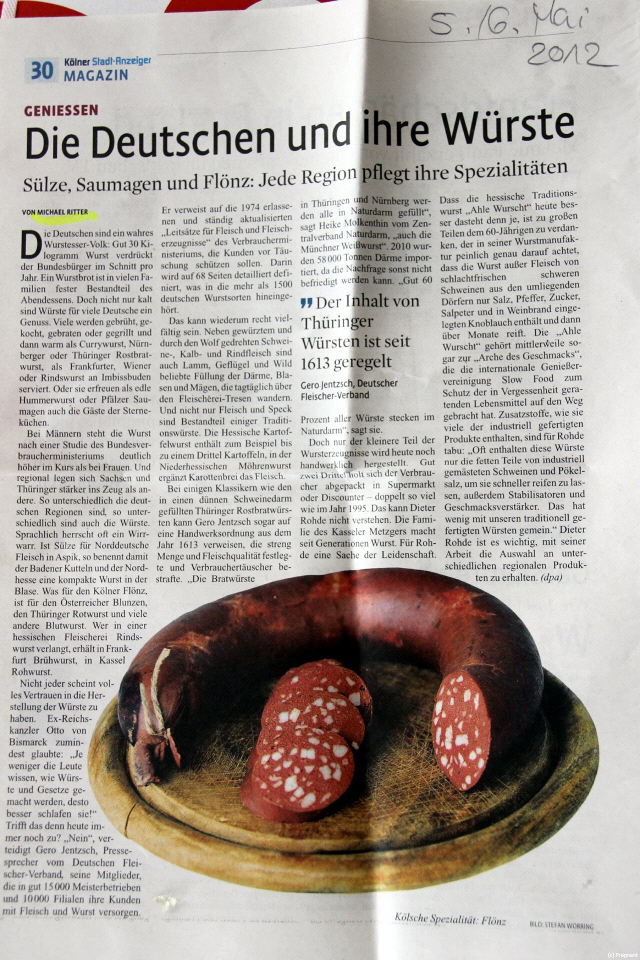 Kölner Stadtanzeiger, Die Deutschen und ihre Würste